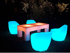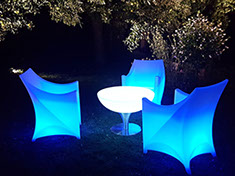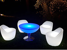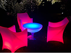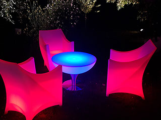 Verleihe Deinem Event eine besondere Note mit beleuchteten Möbeln und Accessoires.