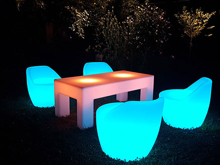 Die spektakulärste Wirkung entfalten LED-Möbel unter freiem Nachthimmel.
