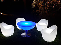 Die LED-Loungemöbel sind untereinander toll kombinierbar, so ergeben sich die eindrucksvollsten LED-Lounge-Szenerien.