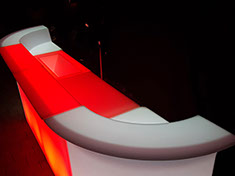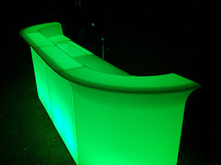 Die Bar ist eine modulare Einheit aus Polyäthylen mit farbwechsel Funktion. Eine schöne Bar für verschiedenste Einsatzzwecke.